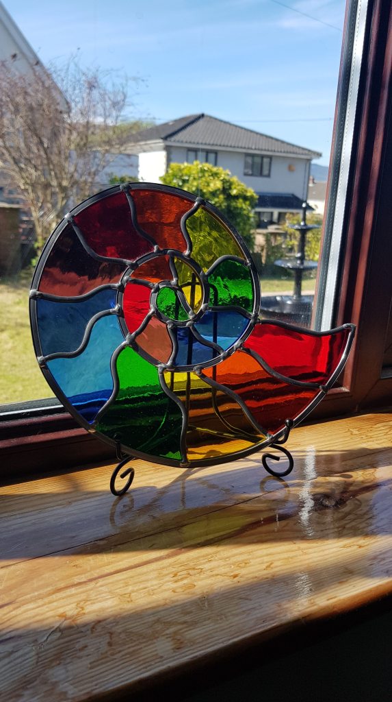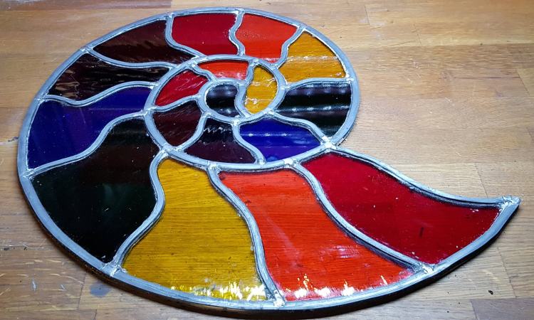 As a geologist by background fossils have been an obsession since I was very young. I used one of my ammonite fossils as they template for creating stained glass designs.