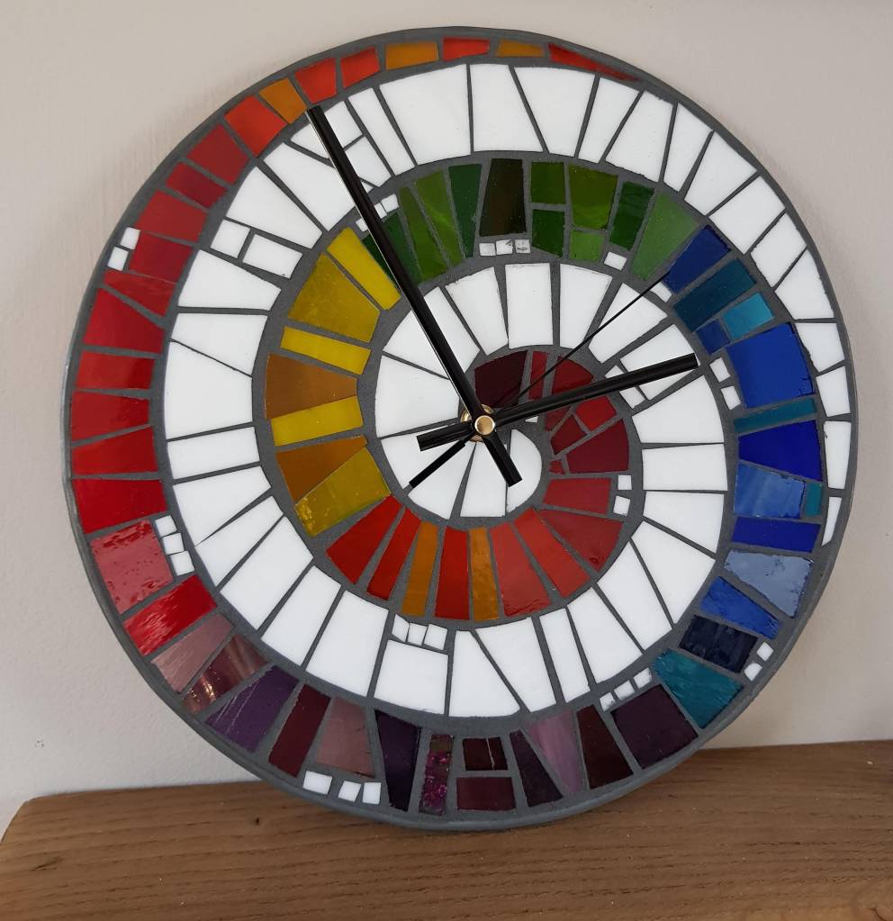 I had been thinking of creating some mosaic table tops with the small offcuts I have started to accumulate. However I decided to create smaller clock faces.