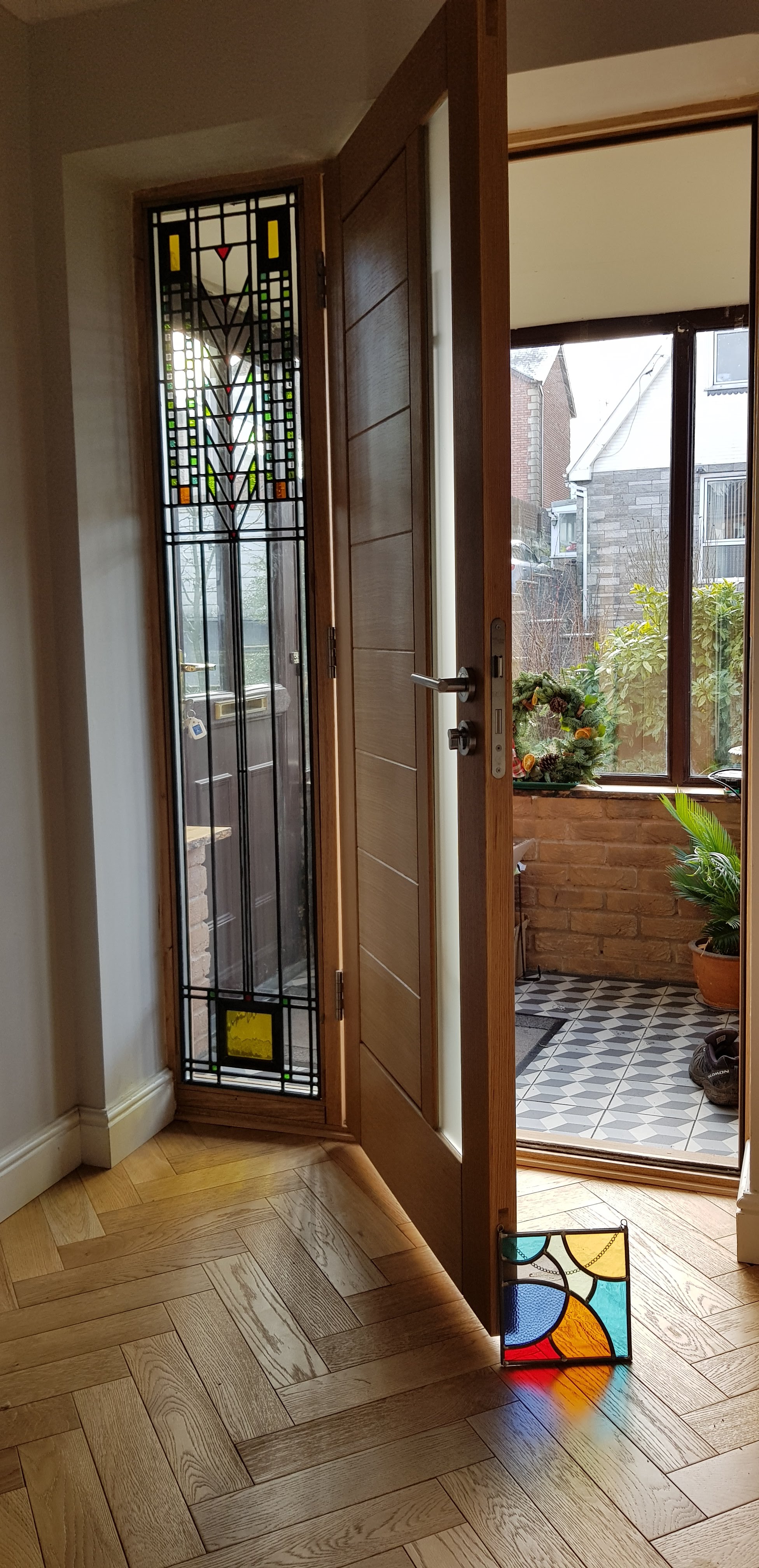 The window space that inspired me to go on a stained glassed day course! I based the window on Frank Lloyd Wright’s Tree of Life design.